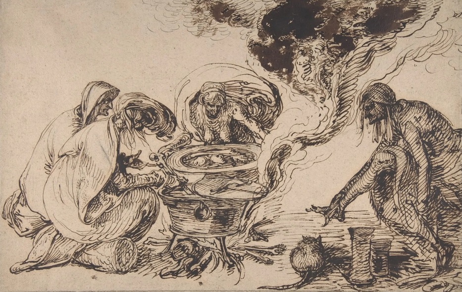 Le rapport à Satan étant établi, on ne s’étonnera pas que la belladone soit reliée à la sorcellerie. De fait, nombreuses sont les figures que l’on peut rapprocher de la sorcière et qui, généralement dans une volonté d’empoisonner, font usage de la « cerise du diable ». Ainsi, dès l’Antiquité, on peut repérer plusieurs enchanteresses qui auraient vraisemblablement employé la belladone. Circé, la célèbre magicienne que rencontre Ulysse à son retour vers Ithaque, était réputée connaître les propriétés des plantes et les appliquer dans ses potions. On a pu avancer que la transformation en porc de l’équipage du héros serait en fait une hallucination liée à la drogue fournie par la sorcière (17)… Les pauvres marins se seraient pris pour des animaux, au point de dévorer les glands qu’on leur jetait, et ce en raison des plantes qu’ils auraient ingérées, dont pourrait faire partie la belladone. On attribue aussi à Hécate, déesse de l’épouvante, d’affiliation lunaire, l’usage de la belladone à des fins de divination (18). Par ailleurs, Christian Elling, dans son livre Shakespeare, an insight into his world and its poetry, fait un rapprochement intéressant quand il écrit que « le nom belladone provient du fait que lesdites gouttes donnent à la femme qui désire plaire les grands yeux, fixes et hypnotiques de Méduse » (19). La gorgone serait-elle une personnification de la belladone, aux grosses pupilles noires capables de pétrifier le mortel qui les croise ? Ou de ses consommatrices, les sorcières aux yeux exorbités par l’atropine, paraissant contempler les fantômes invisibles et l’Enfer d’où ils jaillissent ?