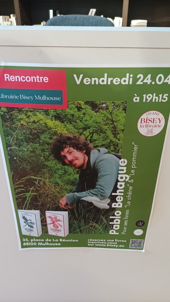 J’étais hier à Mulhouse, dans la belle librairie Bisey, pour participer à une petite rencontre avec les lecteurs et lectrices, et discuter de mes livres sur le chêne et le pommier. C’était un très beau moment, riche en échange. Merci à la librairie Bisey pour l’accueil !