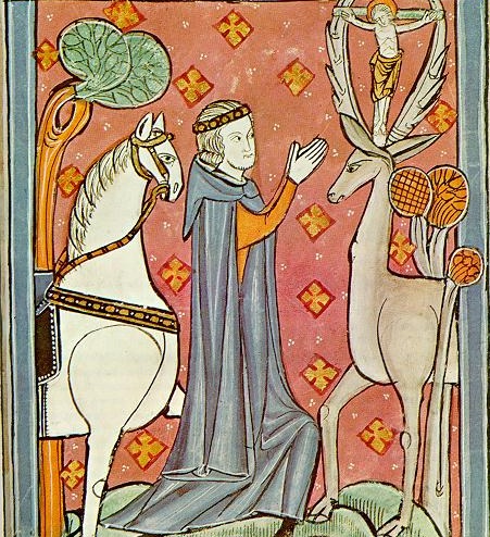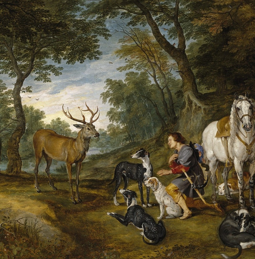 The Vision of Saint Hubert by Jan Brueghel the Elder and Peter Paul Rubens. 1617.The Miracle of Saint Eustace. 13th century illumination.