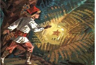 Such a treasure could only stimulate the imagination, and it is therefore not surprising that the fern flower is used in works of fiction. In addition to popular legends, we find books mentioning it, particularly in Eastern countries where it occupies an important place. The legend is mentioned in a book by the Finnish Aino Kallas, dealing with ancient folklore: The Wolf’s Bride (13). It is also cited by Andrus Kivirähk. In The Man Who Knew the Language of Snakes, the Estonian author mocks it, presenting it as a naive belief (14). In Poland, the fern flower is sometimes the subject of poems, such as that of Adam Asnyk (Kwiat paproci) some of whose verses can be translated as follows: « A strange fern flower blooms in the forests / For a moment in the mysterious shadow / The whole world is gilded with a magic light / But you can only touch it in your dreams » (15). Henri Pourrat, a French writer, collected the legend orally in Auvergne and transcribed it in Contes et légendes du Livradois, released in 1989 (16). Finally, there is a short animated film dedicated to the fern flower, produced by Ladislas and Irène Starewitch in 1949 (17). It features a little boy named Jeannot, who decides to go in search of the treasure on the night of Saint John’s Eve…