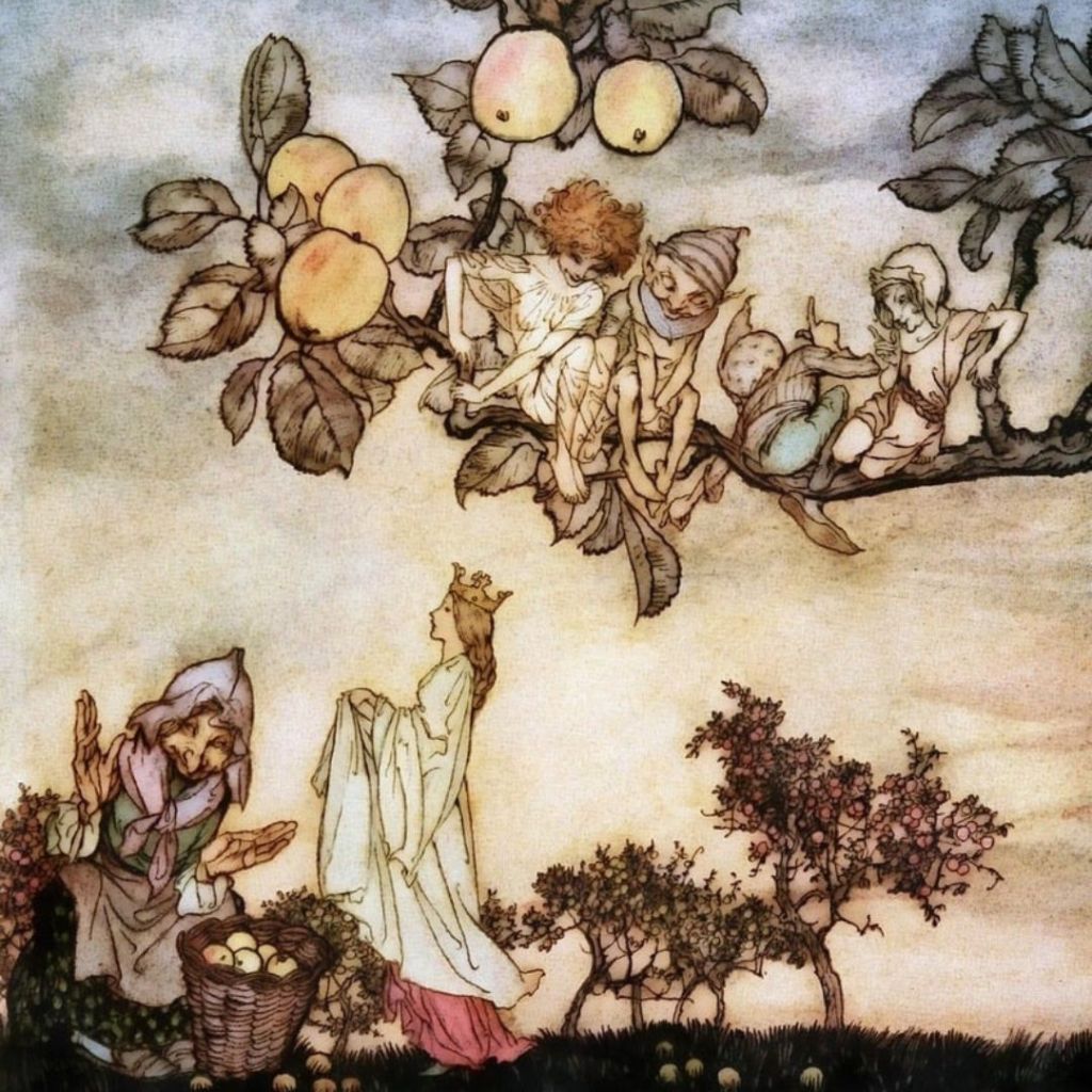 Illustration of the tale « The Gifts of the Small People » by the Brothers Grimm, by Anne Anderson in 1922 / Illustration of the short story « The Devil and Tom Walker » by Washington Irving, by Charles Deas in 1843.