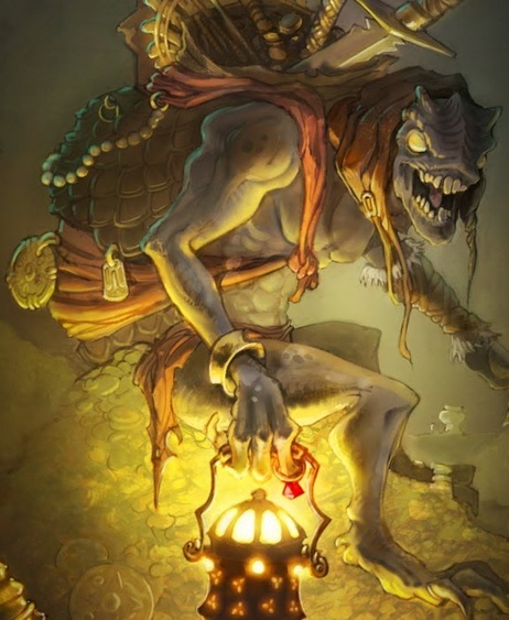 A treasure goblin in the video game Diablo / The goblin leading Hagrid and Harry to the latter’s vault in the dungeons of Gringotts (Harry Potter and the Sorcerer’s Stone, 2001 film) / Illustration of the tale « The Princess and the Goblin » by George MacDonald, by Jessie Willcox Smith in 1920.
