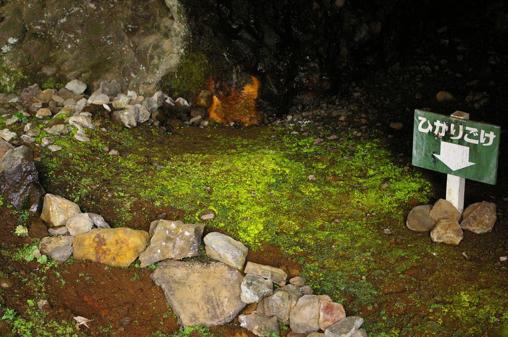 The fluorescence of goblin gold thus plays a sinister role here. But in Japan, it is also the object of more traditional veneration, to the point that a memorial is dedicated to it within a small cave located on the island of Hokkaido. Luminous moss covers a good part of the floor and walls of this cavern, where one can reflect and meditate, losing oneself in its singular phosphorescence.