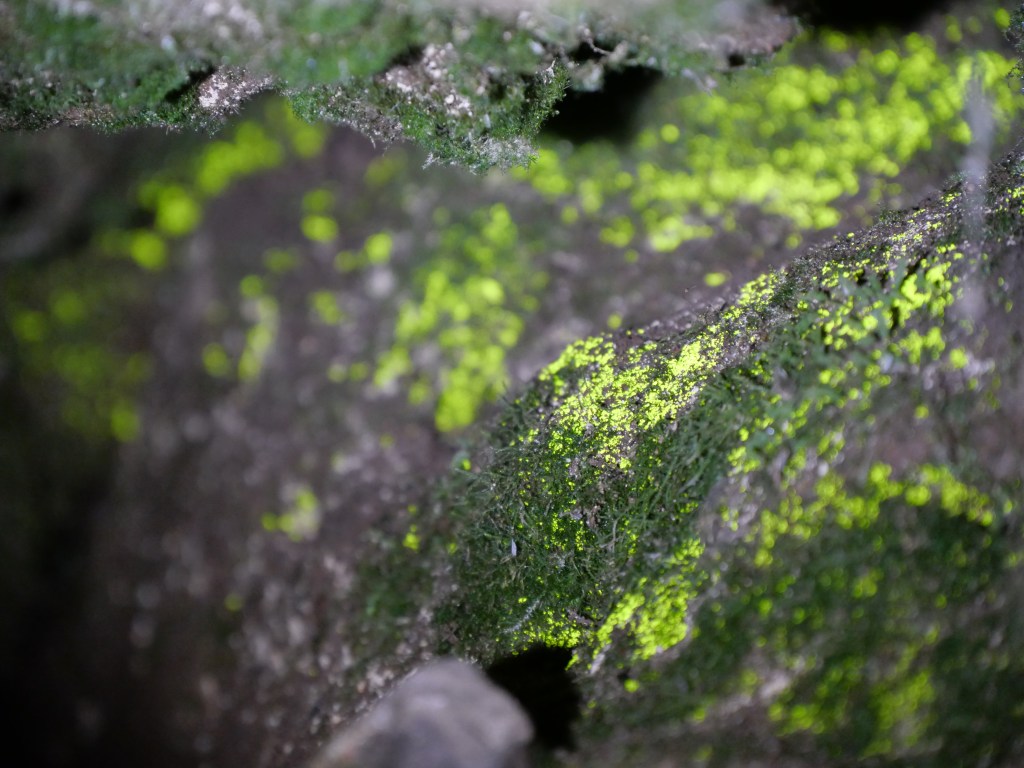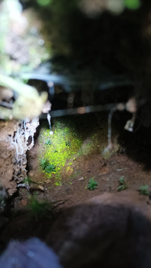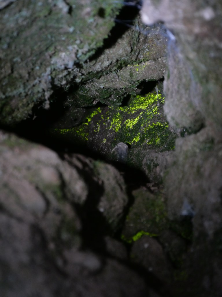 I remember my first encounter with Schistostega pennata as if it were yesterday. I was a young bryologist, still quite inexperienced, watching a wonderful, unsuspected world unfold before me: the world of mosses and liverworts, which I have never stopped exploring since. But if bryophytes are a fantastic universe in themselves, what can be said of this luminous moss, shimmering emerald green in the heart of hidden rocks; a natural treasure, revealing itself only to those passionate enough to venture into these seemingly useless crevices? That day, June 29, 2013, I had set out to explore the forests and streams of the Pays de Bitche, in Moselle, in the northernmost part of the Vosges Mountains (more precisely, in the commune of Sturzelbronn). Exploring the bryophyte flora of a rocky outcrop, I stumbled upon a small cave that plunged into darkness… It was then, under my magnifying glass, as I examined the species growing on the walls of the entrance, that I recognized the pinnate leaves of Schistostega. A smile bloomed on my lips, for it was a discovery for me, and it widened even further when, using my phone’s flashlight, I saw the emerald protonema gleaming in the dim light, a little further into the cavern… There weren’t many, just a few small spots here and there, but that was enough to make me happy. I found it very difficult to leave that place, for I had the overwhelming feeling of having unearthed a treasure; not a material treasure, but something far more precious, something to do with the heart and soul.