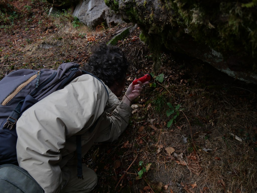 In the years that followed, I repeatedly came across the goblin’s gold during various outings in the Vosges Mountains, alone or with German and Alsatian bryologists. Each time, however, the sight of this shimmering species filled me with a feeling of euphoria, so much so that upon settling in the Vosges Saônoises region, I decided to resume my search for it, in order to better understand its distribution in my area. Considered very rare in Franche-Comté, the luminous moss is seldom mentioned in older literature and was then recorded in only two recently discovered locations. Armed with my flashlight, I scoured the landscapes, finally discovering it in several communes in the area. Sometimes I saw it shining in a cave, sometimes under the exposed roots of a tree on a bank… The same emotion overwhelmed me with each find, and when I looked into the accounts of the discovery of the species, I realized that this enthusiasm for Schistostega pennata was in fact widely shared.