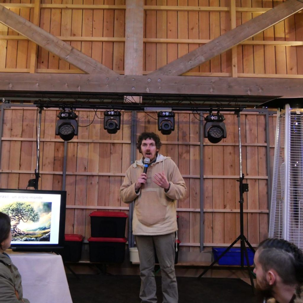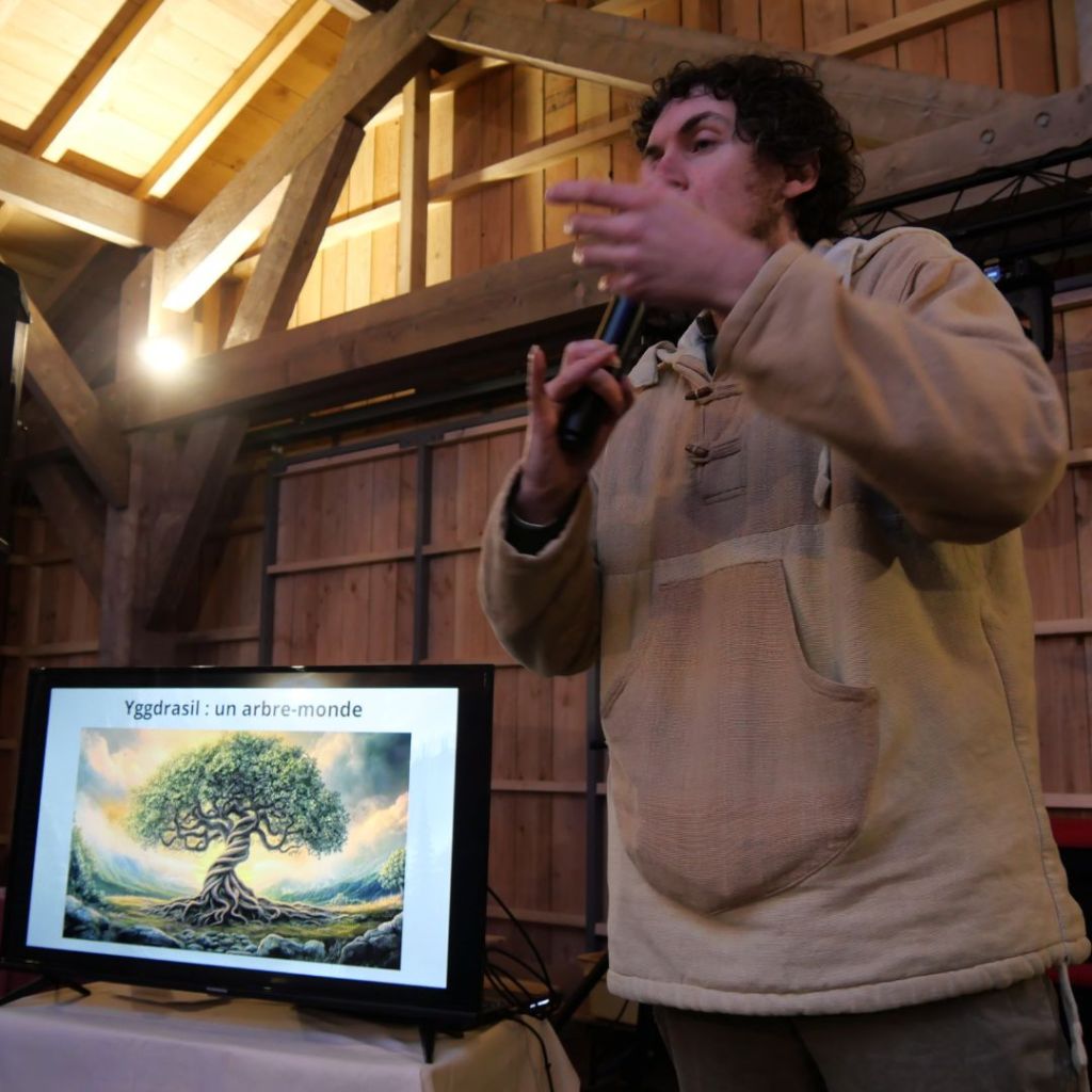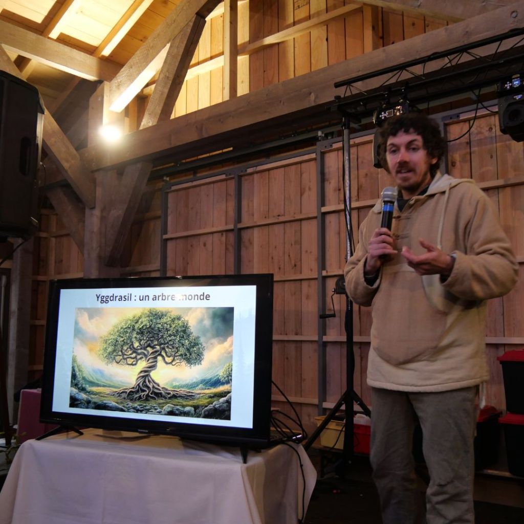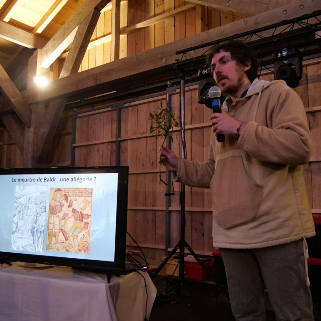 Devant une trentaine de personnes, j’ai donc évoqué différents épisodes mythologiques reliant les arbres à la vie, qu’ils créent, entretiennent et protègent de façon symbolique. Depuis l’arbre-monde Yggdrasil jusqu’au gui tuant Baldr, depuis les pommes de jeunesse de la déesse Idunn jusqu’à la fuite de Bergelmir sur un tronc flottant, nous avons ainsi pu nous rendre compte du rôle central des arbres dans l’imaginaire de l’époque.